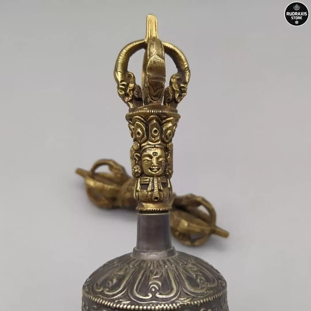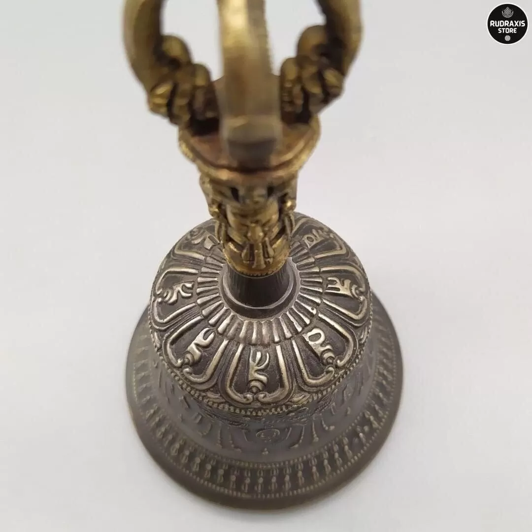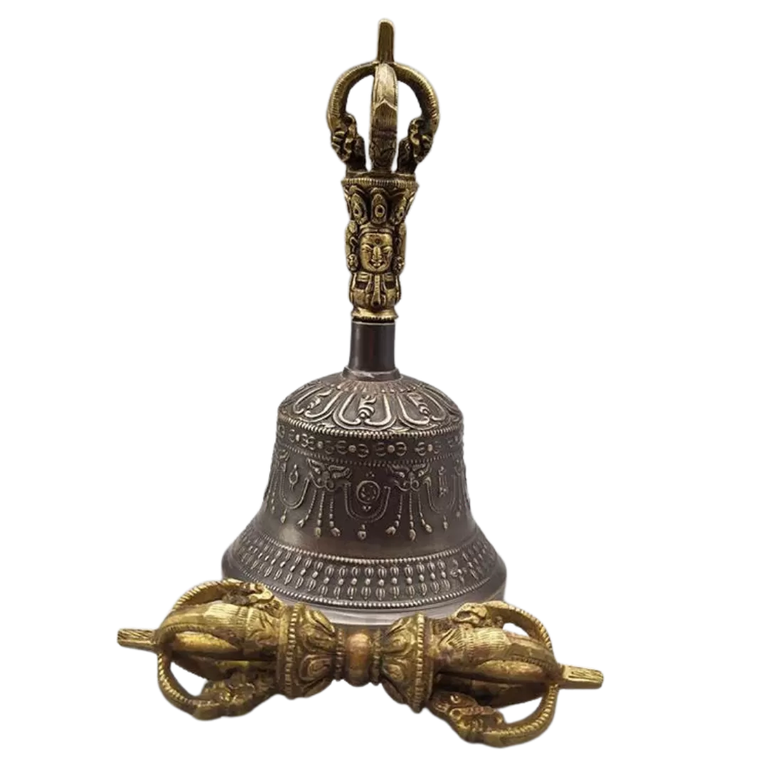 Ghanta or Bell is never separated from the Vajra or Dorje. Both the Bell (shown) and Vajra contain endless symbolism. Holding the Dorje in the right hand symbolically connects us to the Buddhas (and especially our own Yidam). Holding the Bell (Ghanta) is like cradling the entire mandala of the Yidam. The Bell is wisdom and emptiness. The Dorje represents means and compassion.