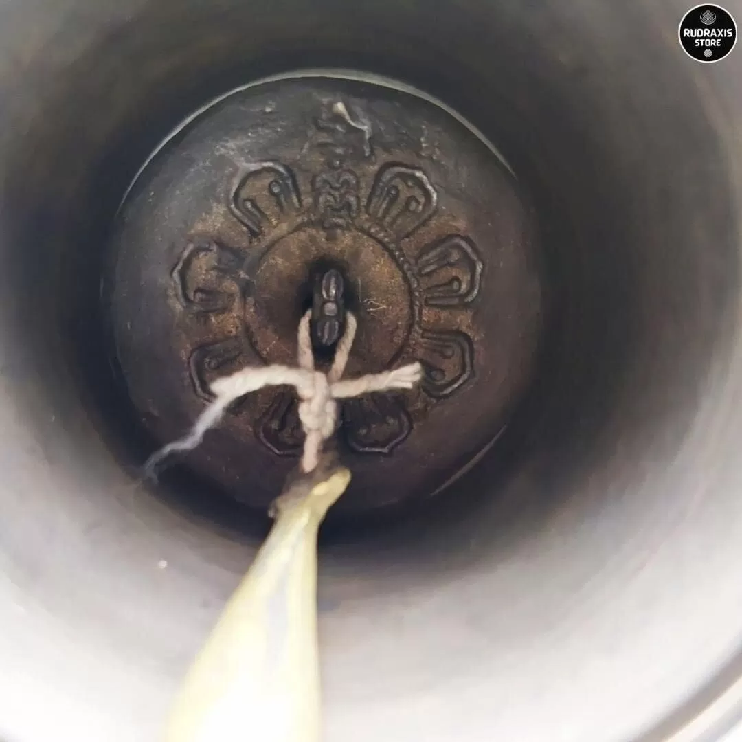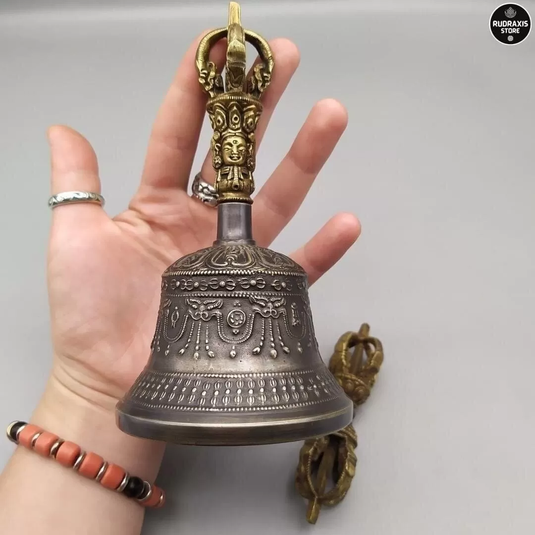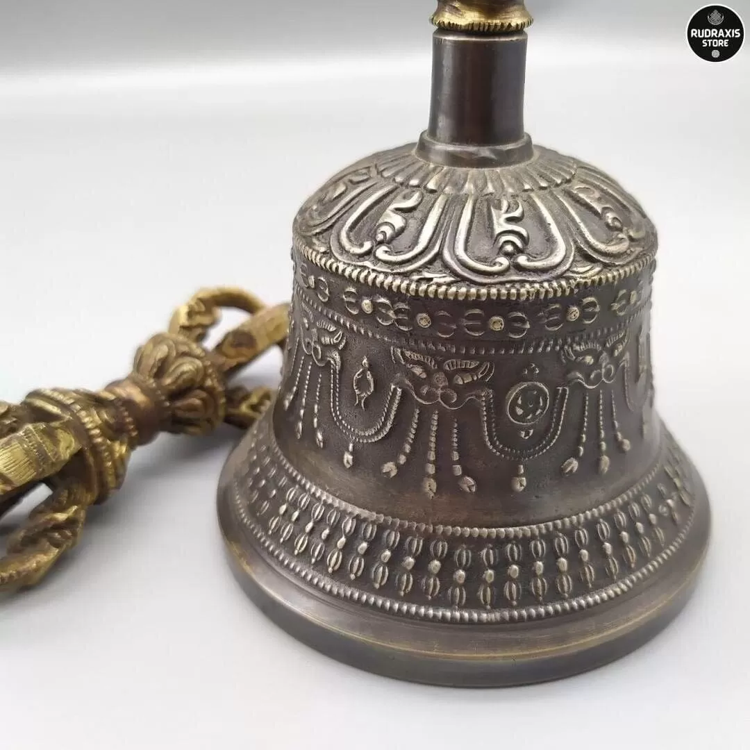 Ghanta or Bell is never separated from the Vajra or Dorje. Both the Bell (shown) and Vajra contain endless symbolism. Holding the Dorje in the right hand symbolically connects us to the Buddhas (and especially our own Yidam). Holding the Bell (Ghanta) is like cradling the entire mandala of the Yidam. The Bell is wisdom and emptiness. The Dorje represents means and compassion.