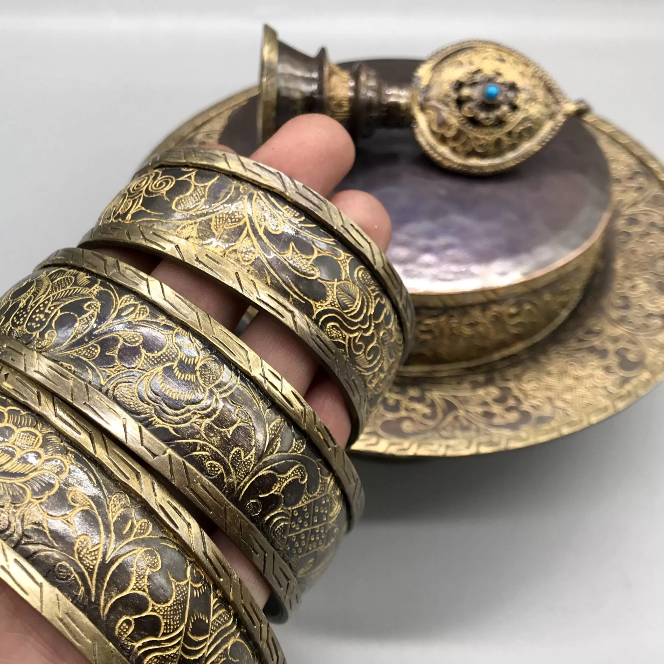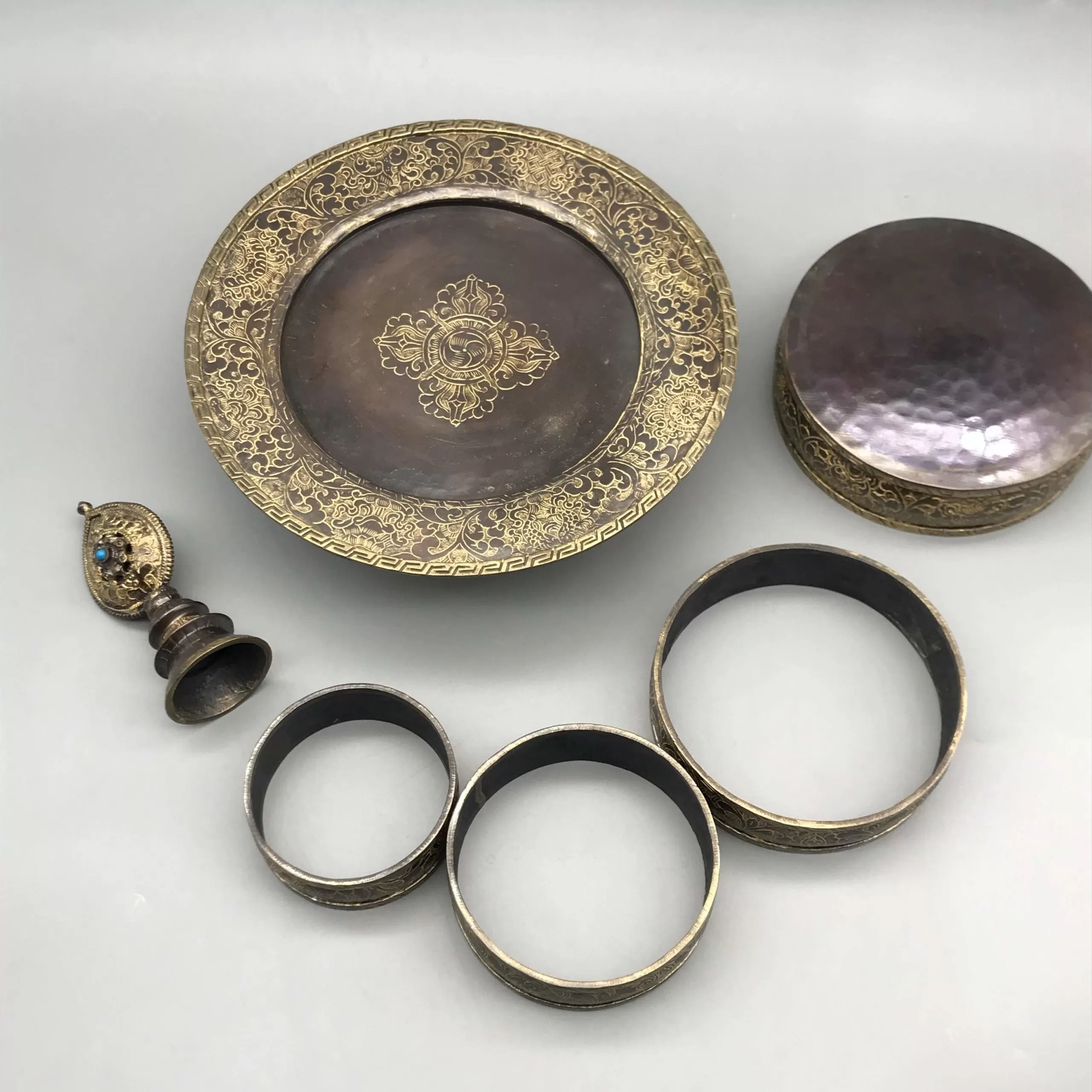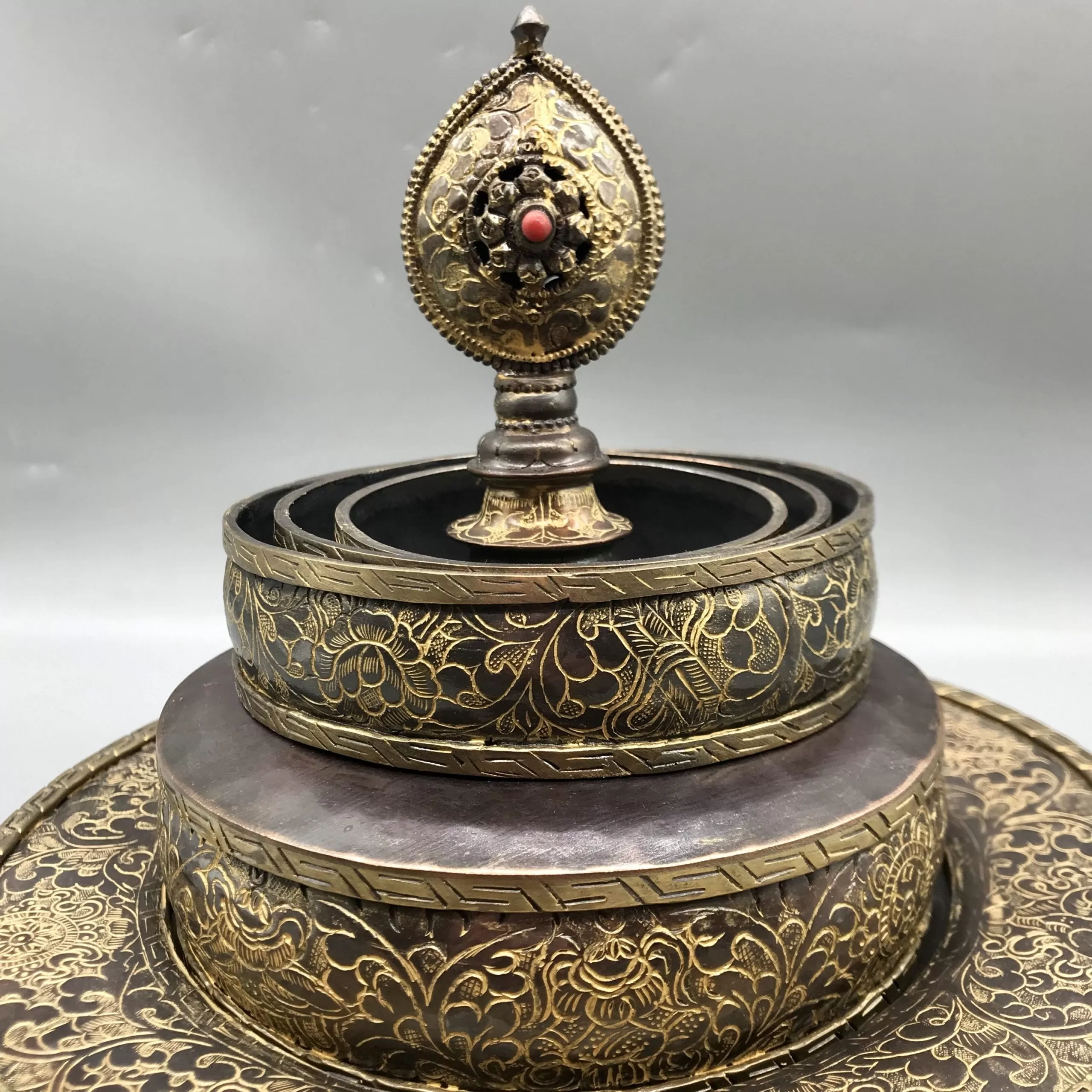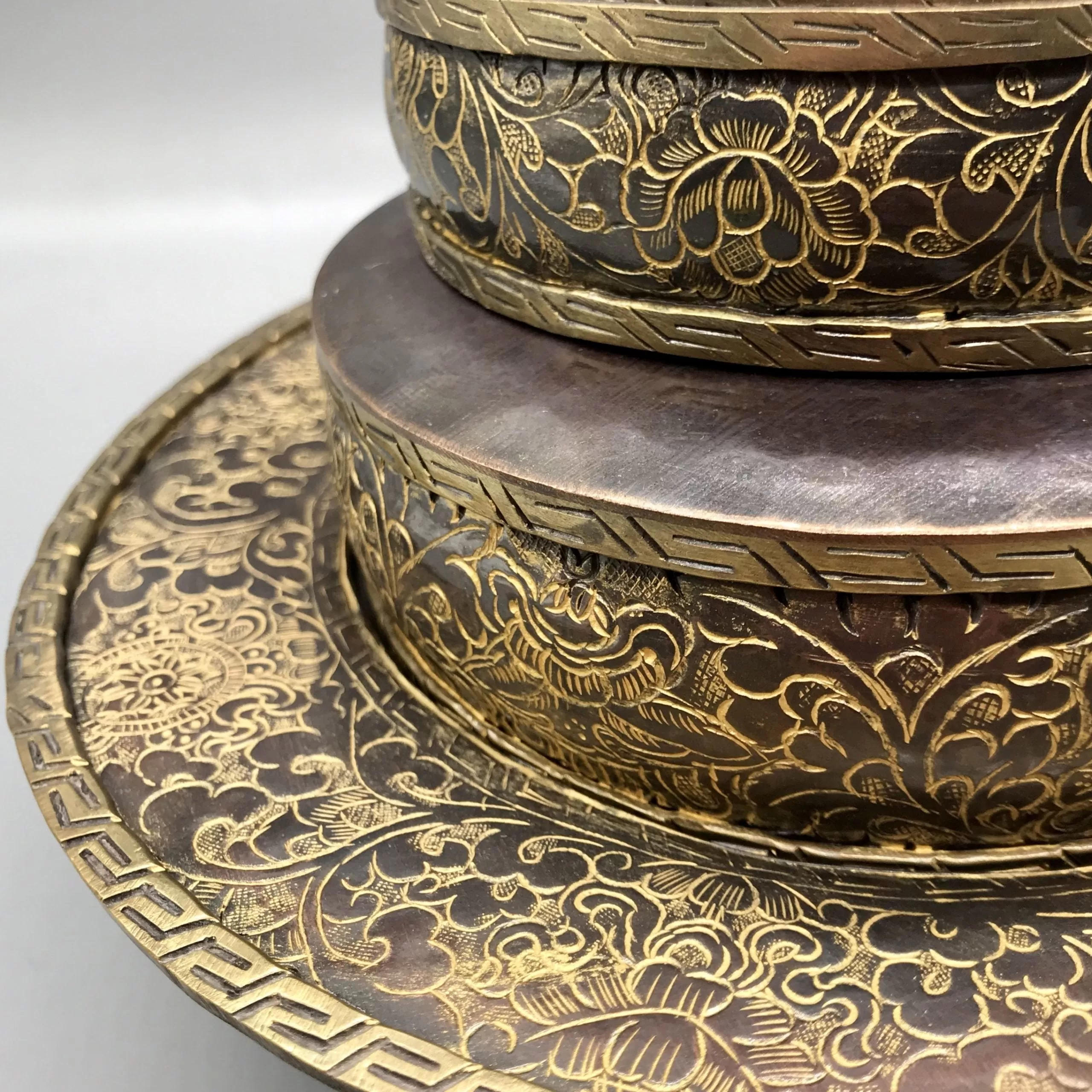 A traditional multi-tiered Mandala Offering Set, exquisitely hand-carved from copper. Representing all that is beautiful and precious in the universe being offered up to the Buddhas, mandala offerings generate immense merits that will help propel you towards Enlightenment.