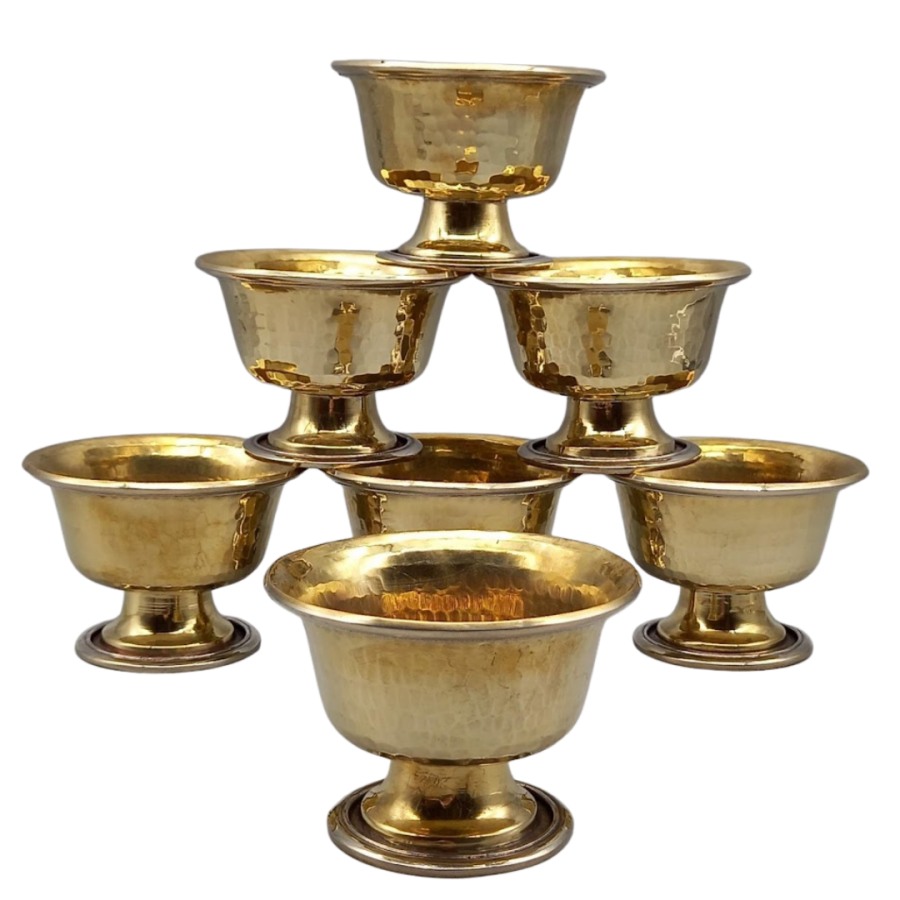 The set of 7 offering bowls may be placed on one’s shrine and filled with water daily as a way of accumulating virtue and merit.